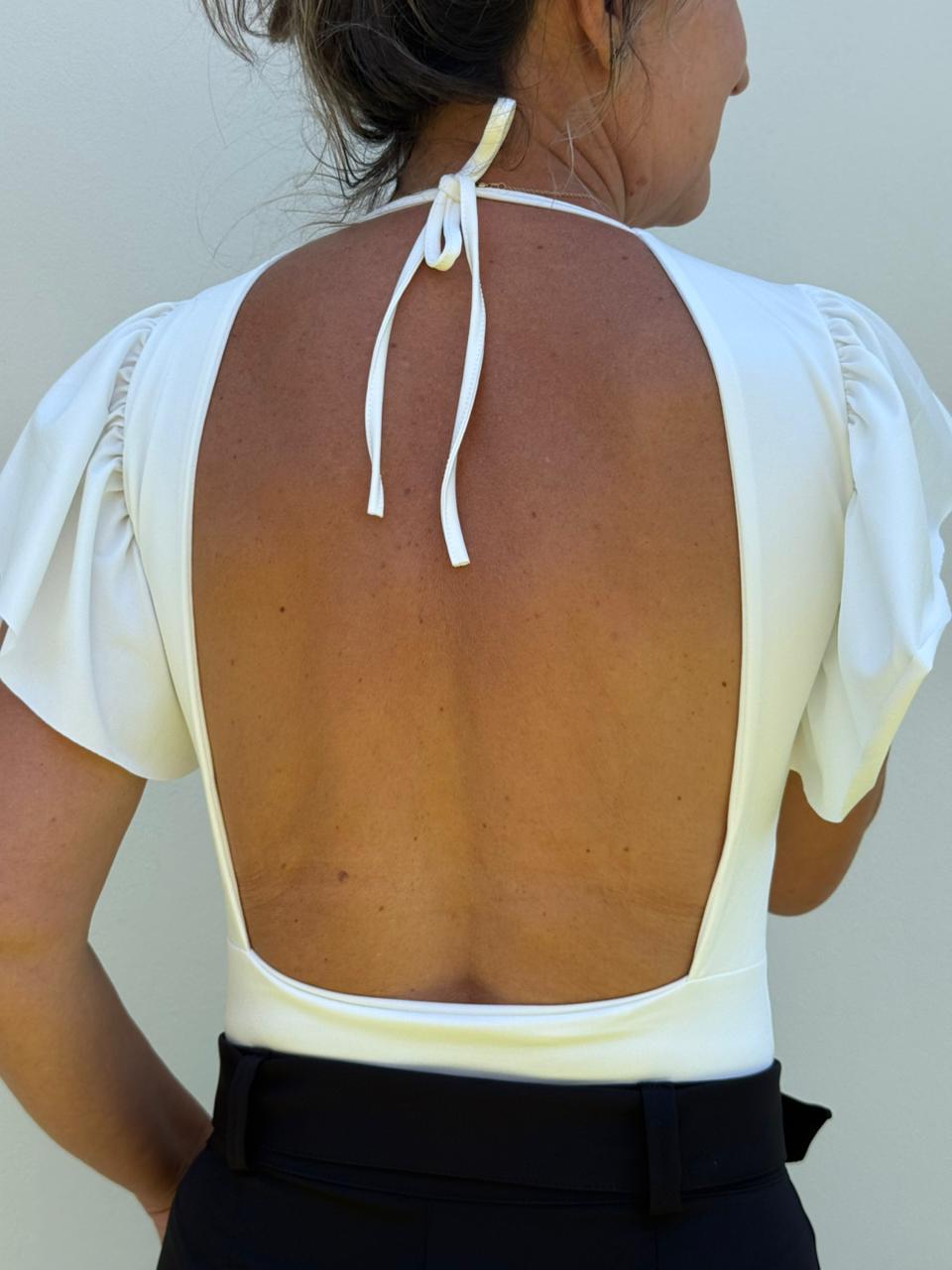 Body de lycra con detalle de Volados en los hombros y espalda descubierta.